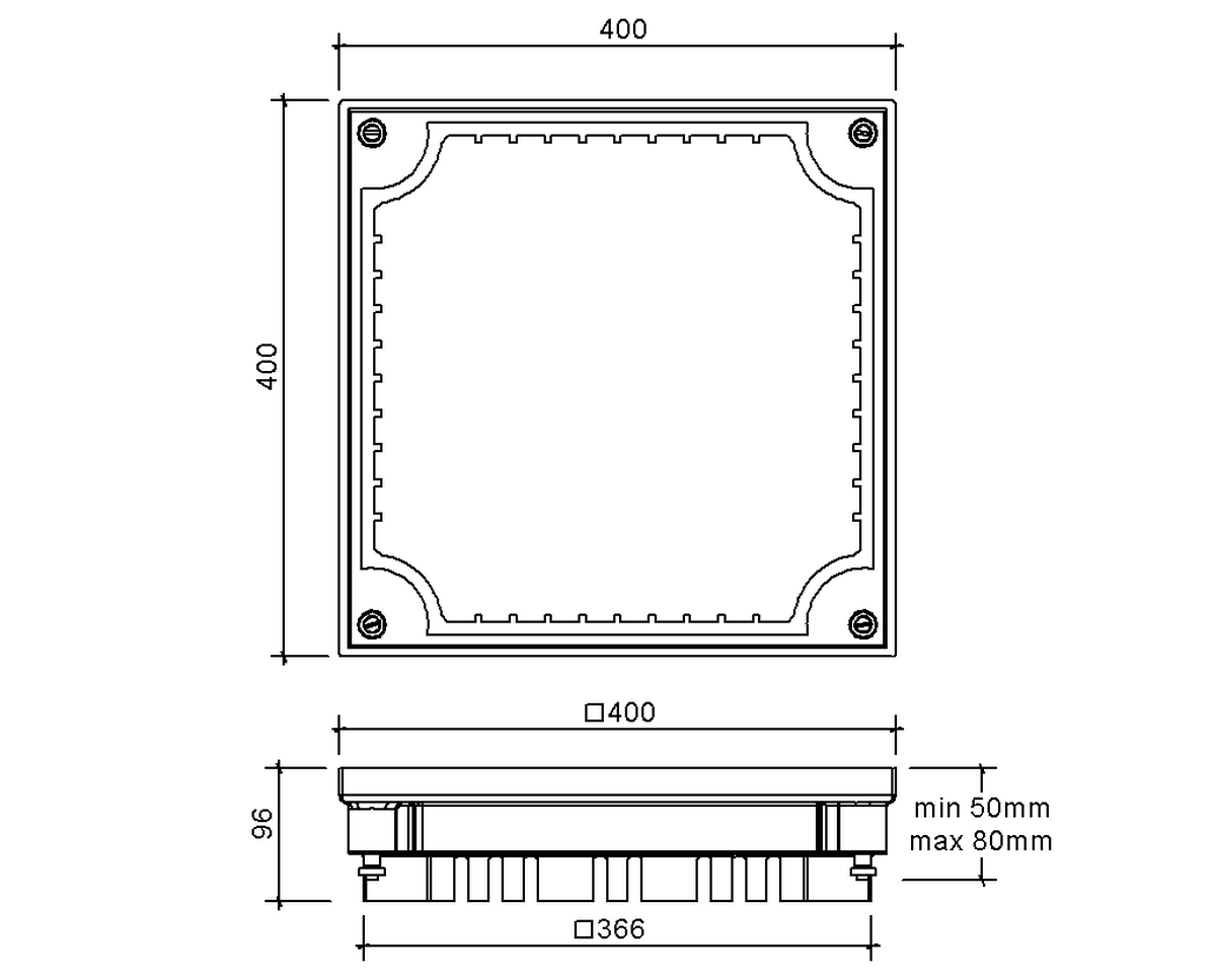 SitaGreen extension unit, made of polyurethane, 400 x 400 mm, with four height-adjustable brass bolts. Height: 50–80 mm, stackable. Load rating class L 15.