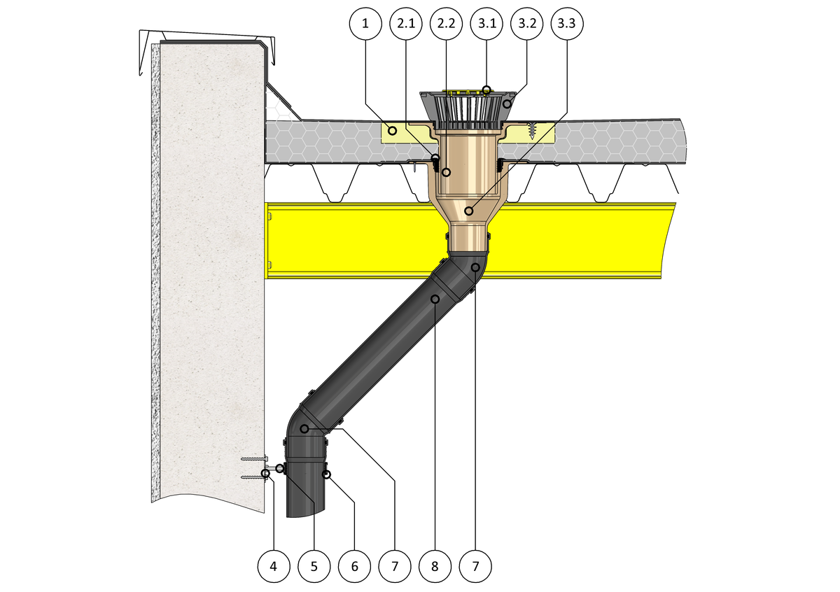 It's really easy to find the right downpipe for the conventional drainage outlet. The SitaPipe PP program means you don't have to spent time searching, and instantly brings system competence to the site. With millimetre accuracy, the individual system components are matched to each other and to the particular conventional drainage outlet. They can be connected directly to the roof outlet. A plug-in coupler system holds everything in place securely. And the ability to withstand pressures up to 1.5 bar provides peace of mind in case the ground pipeline is ever blocked or overloaded. In practice this means: Problem-free installation in buildings up to 15 metres in height.