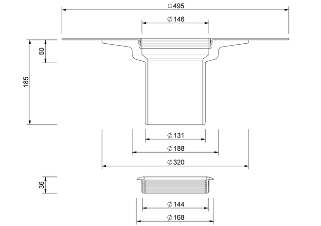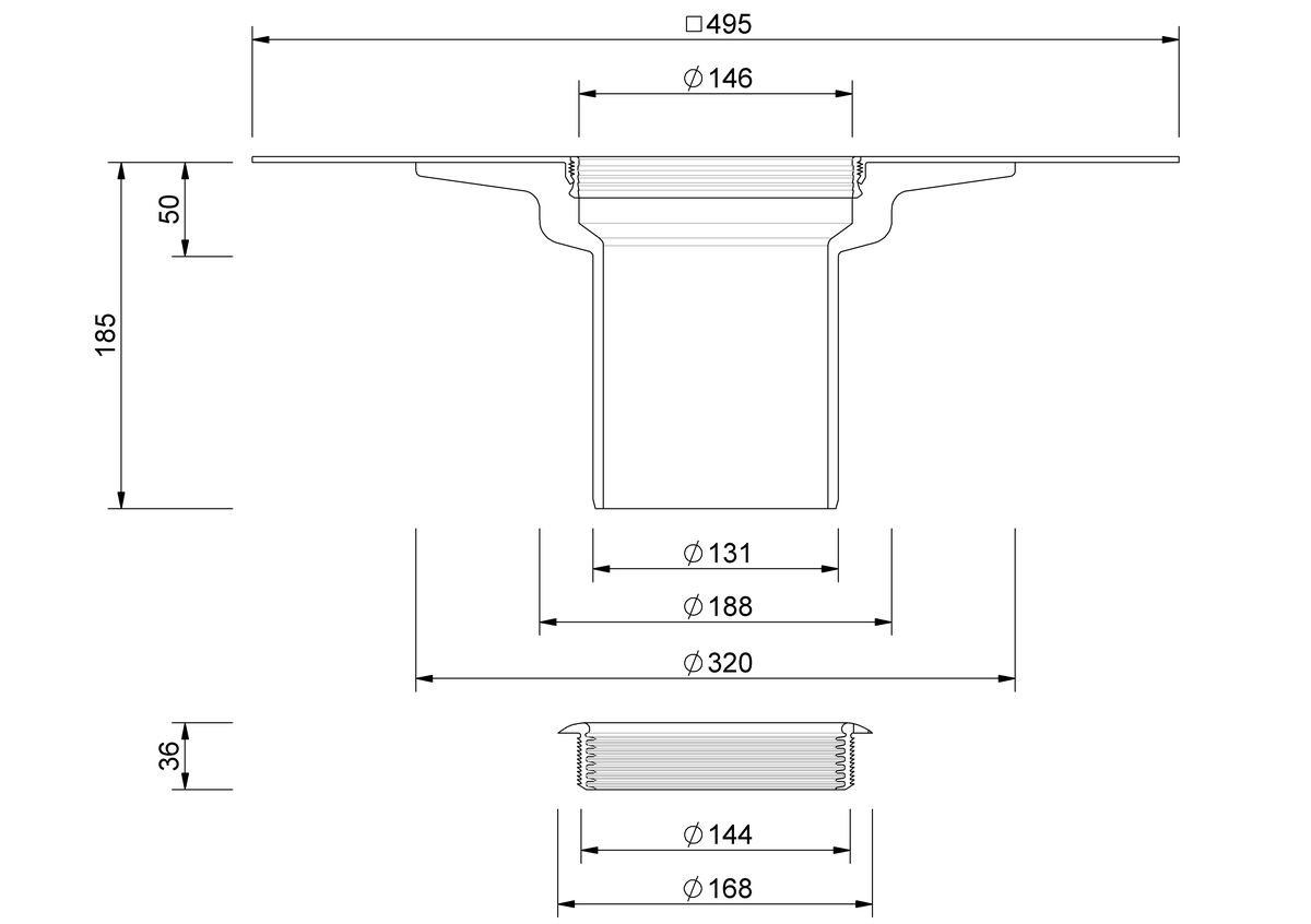 SitaDSS Profi extension unit, made of polyurethane, to DIN EN 1253, thermally insulated, with sealing ring for insulation material thicknesses of 60-320 mm. With foamed-in connection sleeve of choice or as screw-on flange.