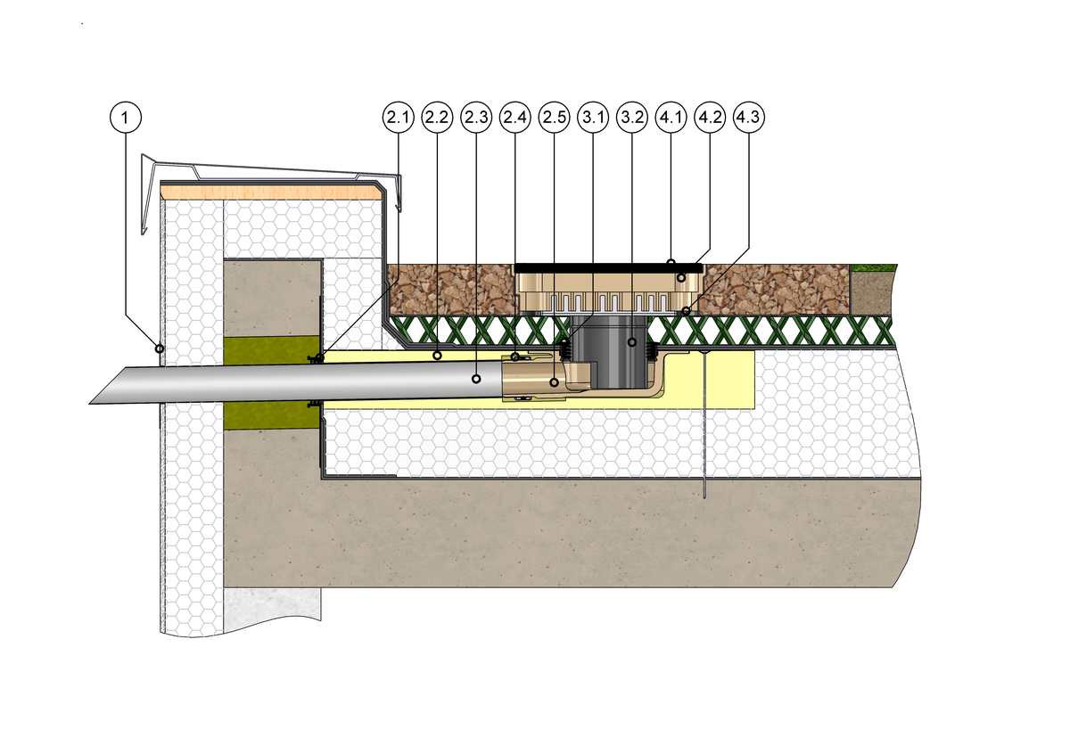 SitaIndra without dome grate with SitaRetention Fix in a non-ventilated roof structure with retention green roof