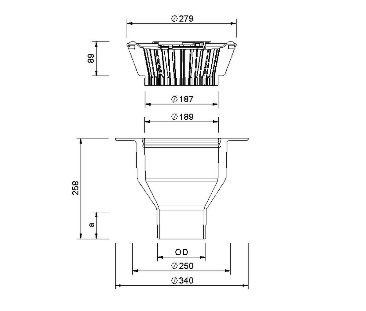 | Size DN | External diameter OD (mm) | Opening/Core borehole (mm) | a (mm) |