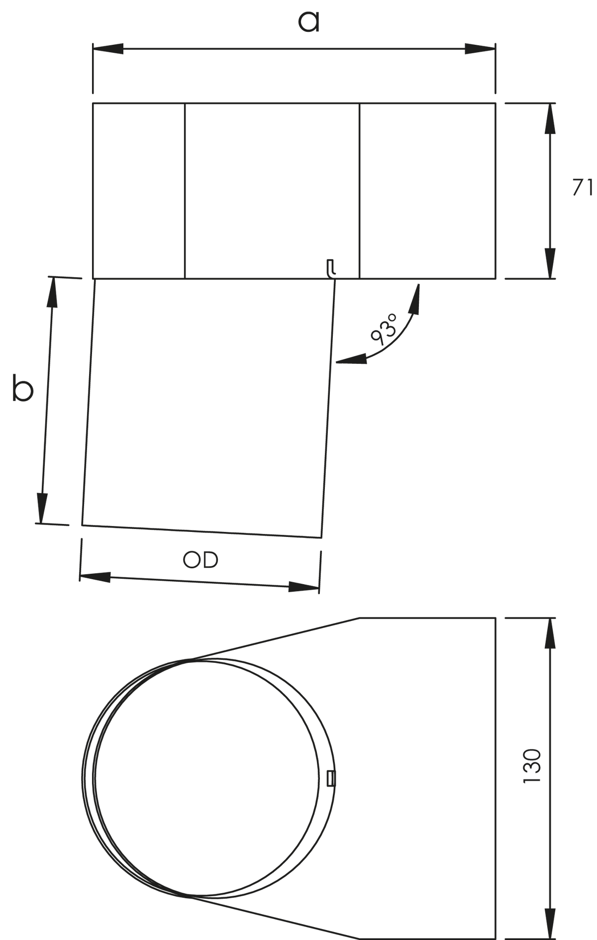| Size DN | External diameter OD (mm) | a (mm) | b (mm) |