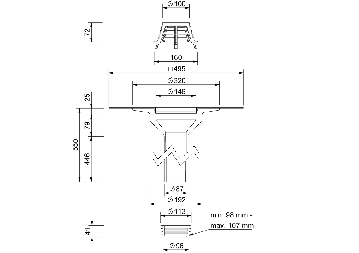 Solution universelle avec raccord long et bague d'étanchéité. Le raccord traverse l’ensemble des couches de la toiture jusqu’à l’avaloir de toiture existant ou la conduite de descente existante. Compatibles avec presque toutes les marques d'avaloir de toiture, les avaloirs de cette série pallient à quasiment toutes les situations de rénovation. Les bagues d’étanchéité sont à utiliser selon le diamètre intérieur existant. Le manchon de raccordement adapté intégré fixe et à fixation supplémentaire permet un raccordement homogène à l'étanchéité de la toiture.