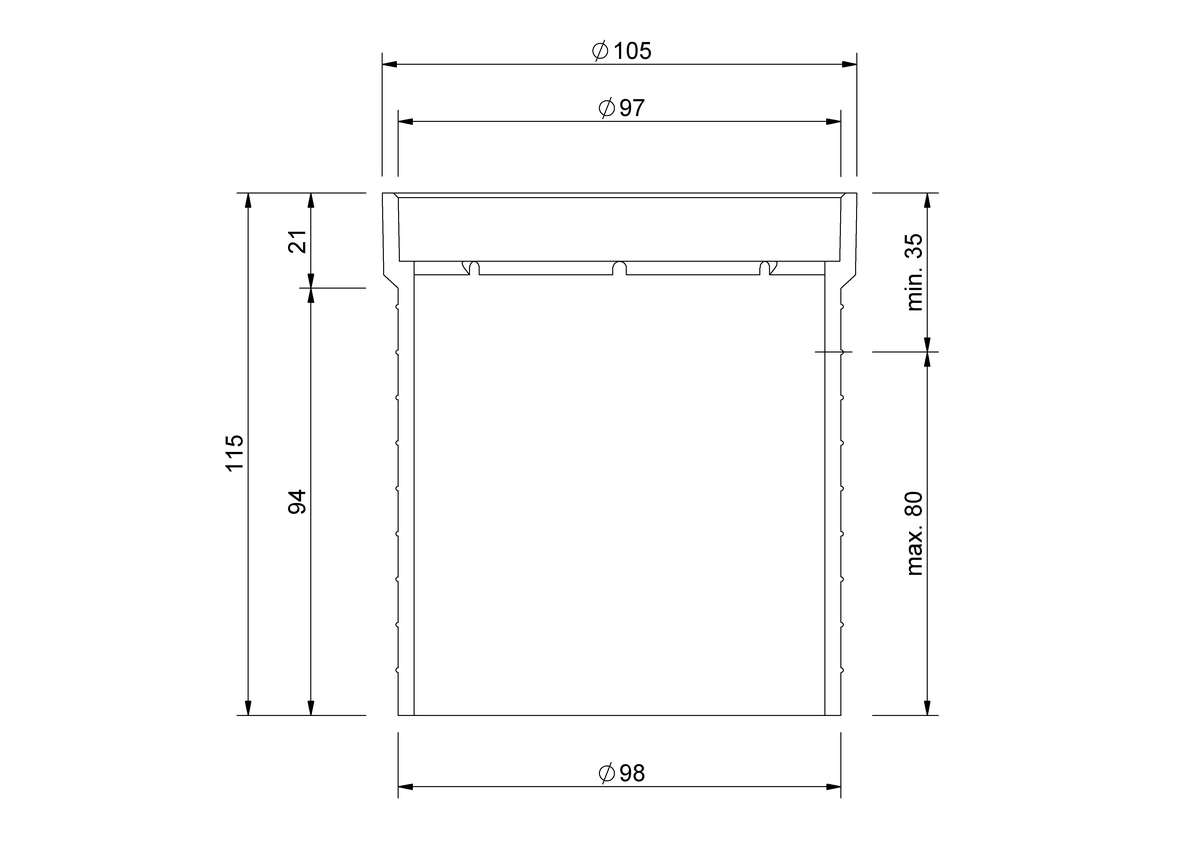 SitaMore Pièce de rattrapage, en polypropylène, en association avec un ensemble couronnement et grille pour balcon, pour un réglage en hauteur supplémentaire de 95 mm, superposable. Fourniture et pose selon les règles de l’art.