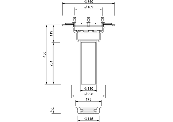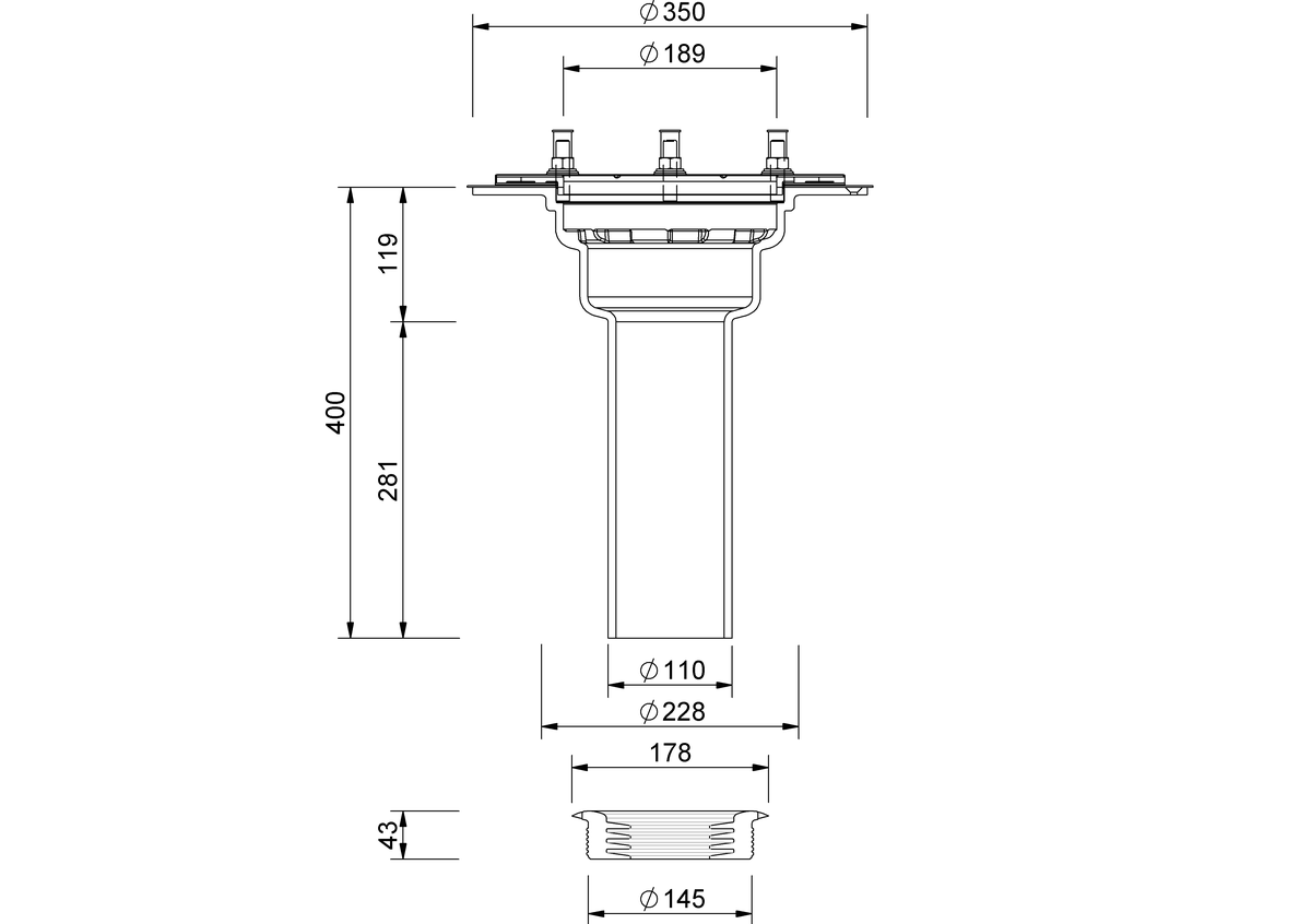 SitaDSS Multi verhogingselement uit gietijzer (materiaalklasse EN-GJL-200). Conform NBN EN 1253. Met schroefflens voor inklemmen van bitumineuze, kunststof en rubberen dakdichtingsbanen. Voor 80 tot 300 mm isolatiedikte.