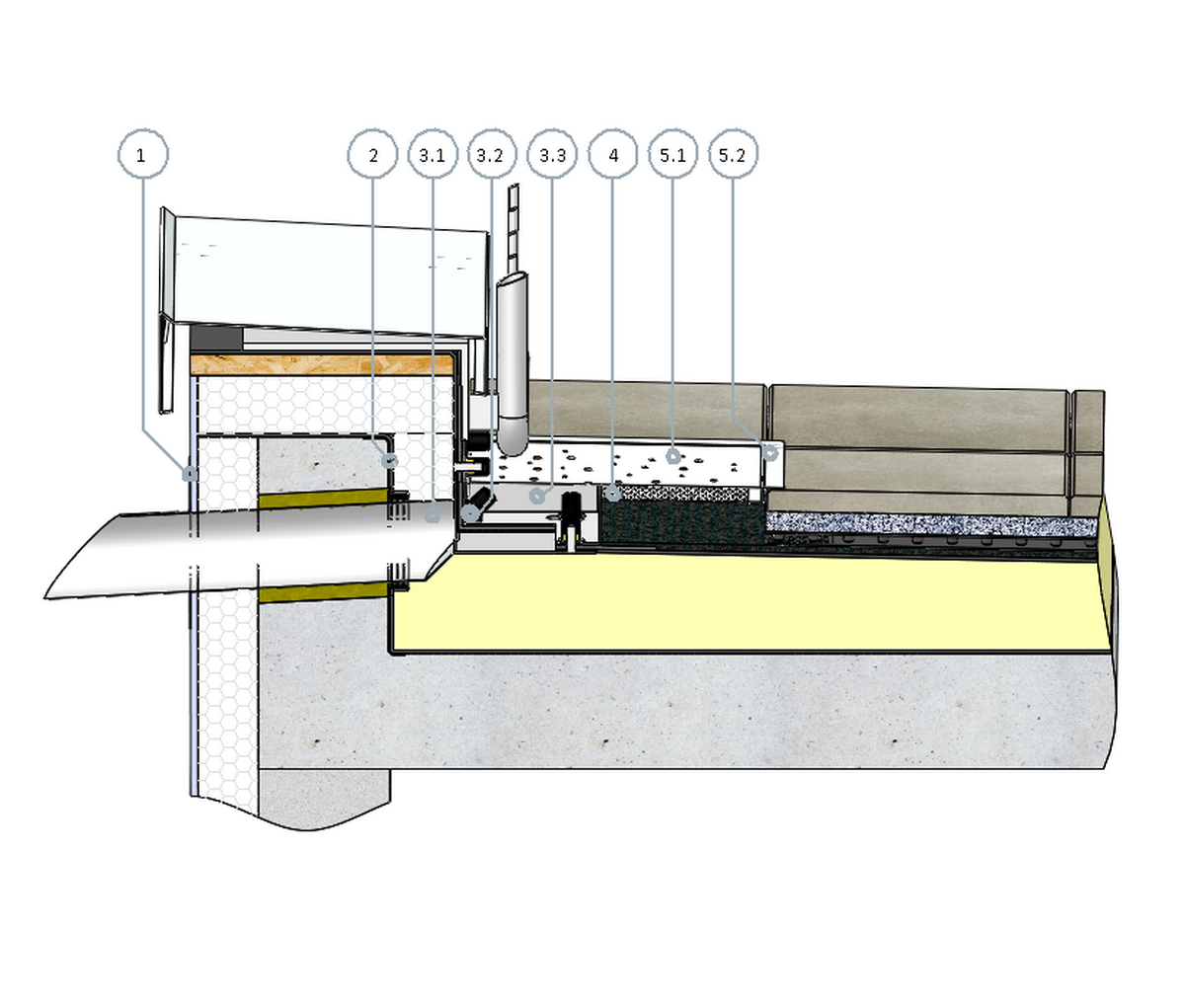 SitaDrain® profielframe met inlegrooster voor dakopstandkolken,van verzinkt staal, belastingklasse K3 conform NEN EN 1253-2, met rolstoel berijdbaar, uitsparing 400 x 400 mm, met omvattend profielframe als basis voor het rooster en driezijdige overgang op de betegeling, geleverd en deskundig ingebouwd.