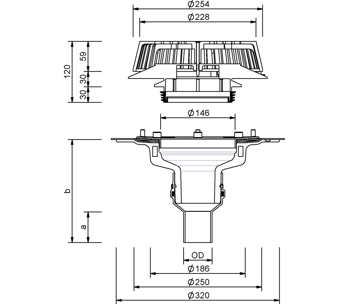 SitaDSS Profi onderdruk-dakkolk met schroefflens, van polyurethaan, thermisch geïsoleerd, conform EN 1253-2, in de nominale diameters DN 56 of DN 70, direct aansluitbaar op PE-afvoerbuizen (via stuiklasverbinding of elektrolasmof) of aan het SitaPipe roestvrijstalen buissysteem, voor afvoer in onderdruk. Met voorgeboorde gaten voor de bevestiging van het bouwelement in de onderconstructie. Inclusief ingeschuimde inzetring voor bevestiging van de bijgeleverde schroeven. Met losse flens uit aluminium en twee afdichtslabben voor het inklemmen van bitumineuze, kunststof en rubberen dakdichtingsbanen. Met Airstop en grindvang. Leveren en plaatsen volgens de regels der kunst.