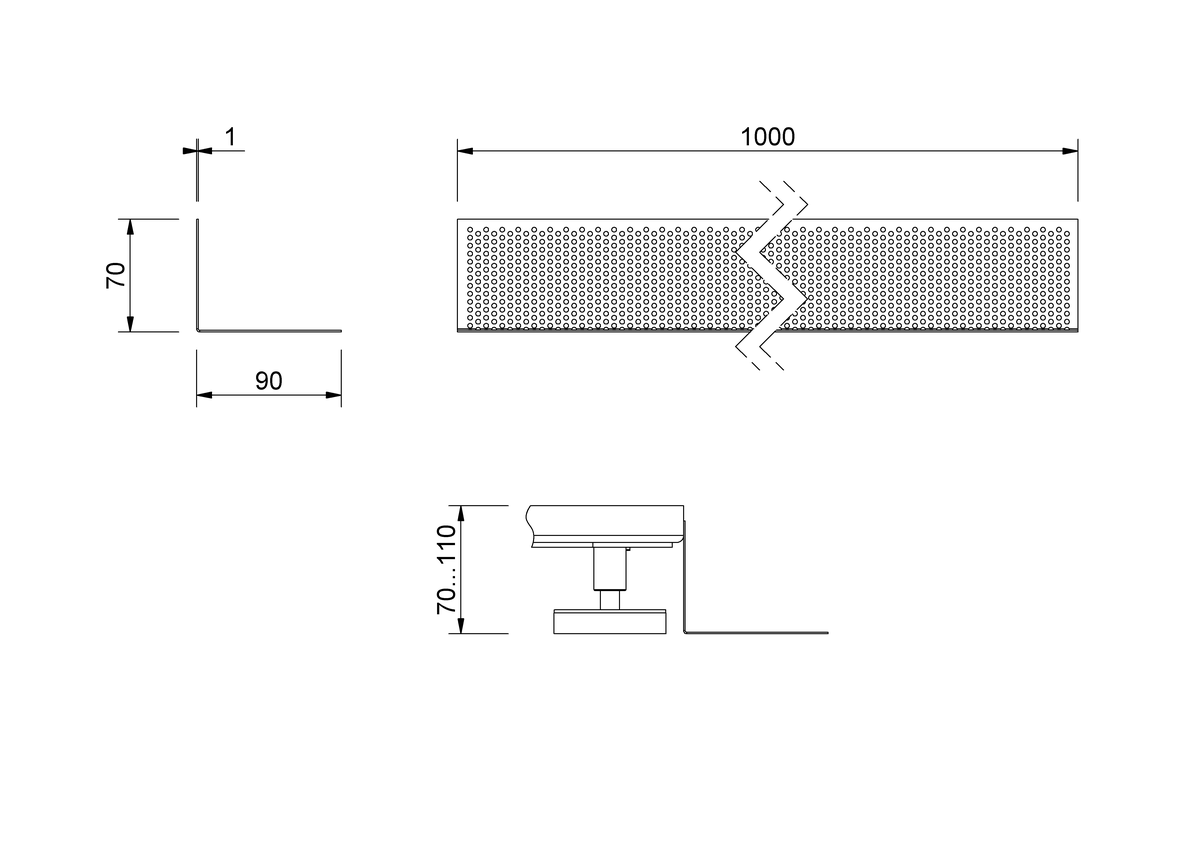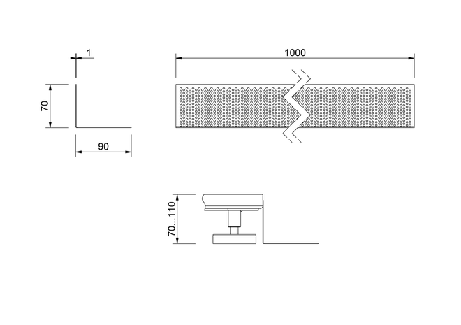 Listwa perforowana, o profilu prostokątnym, z blachy perforowanej. Listwa perforowana umieszczona przed ramą elementu zapobiega przedostawaniu się grysu lub drobnego żwiru.