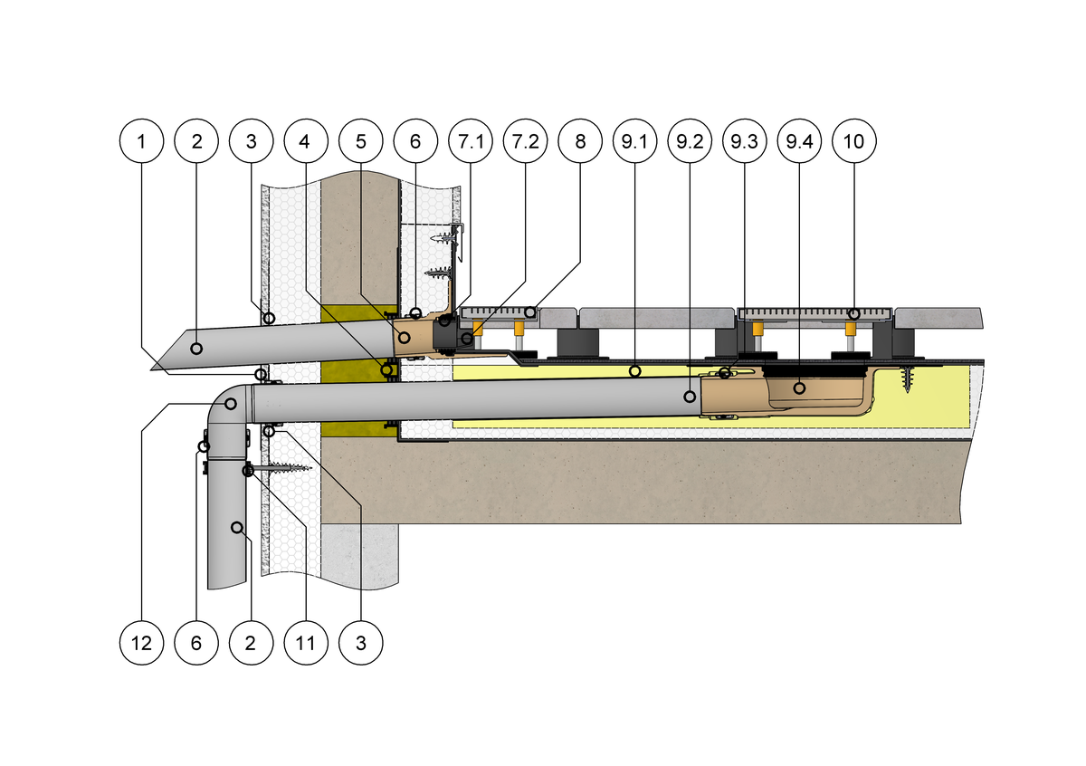 Uszczelka SitaMore do WDVS, wykonana z polietylenu butylowego, jednoczęściowy tynkowany kołnierz powietrzny do szybkiego i szczelnego uszczelniania przepustów rur w systemie izolacji cieplnej z kompozytów zgodnie z DIN 4108-7 i GEG, o średnicach nominalnych DN 70 i DN 100, o wymiarach 320 × 320 mm, z wysoce elastyczną uszczelką z EPDM, samoprzylepnym tynkowanym kołnierzem z polietylenu butylowego do trwałego połączenia na podłożu (wymagany może być podkład samoprzylepny) oraz poliestrową powierzchnią samoprzylepną z tynkiem, element dostarczany gotowy do montażu.