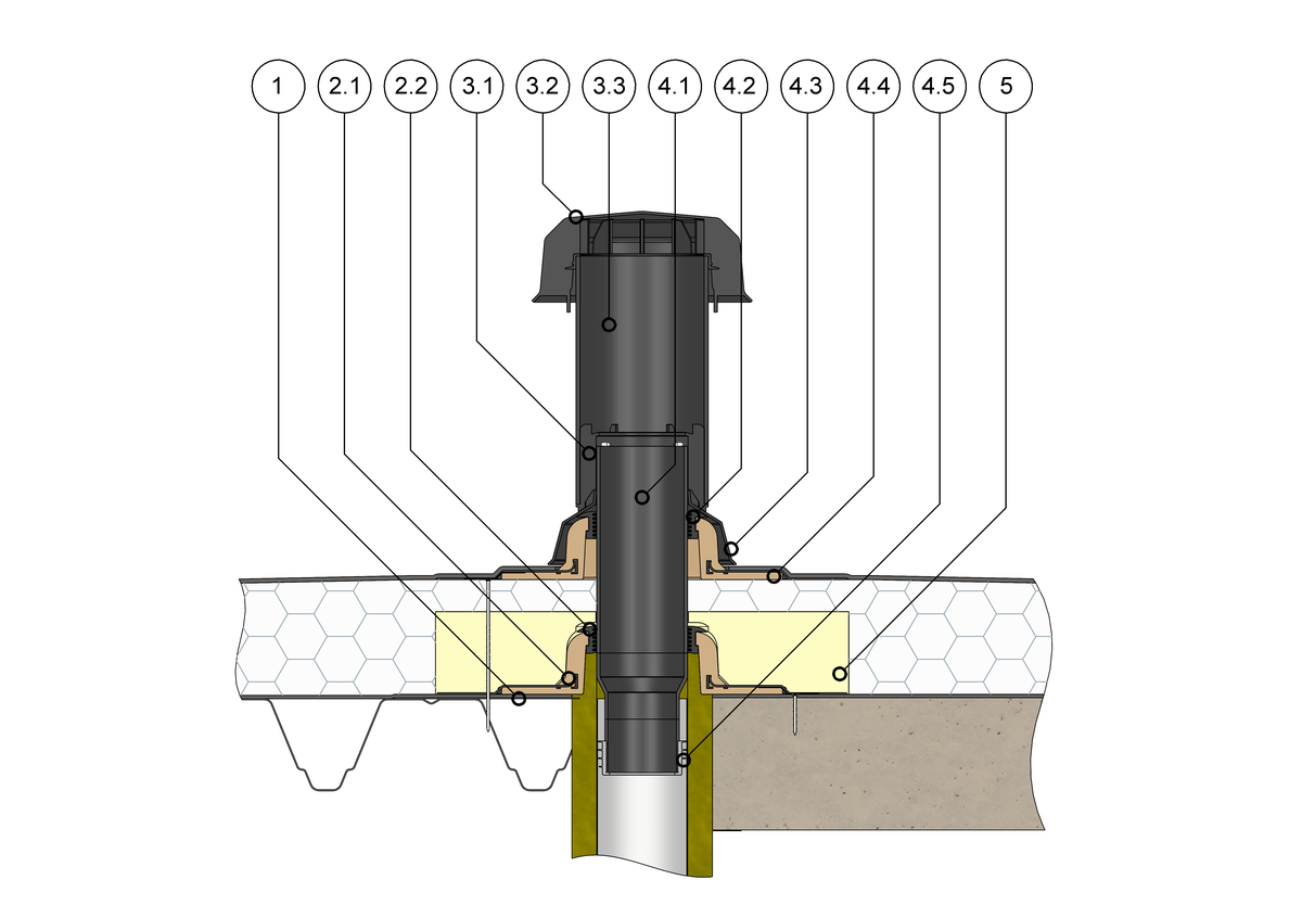 SitaVent Wywietrznik modernizacyjny, z poliuretanu, izolowany cieplnie, do modernizacji rur wentylacyjnych o średnicy wewnętrznej 68–205 mm, z fabrycznie zamontowanym na stałe kołnierzem przyłączeniowym dopasowanym do izolacji dachu. W zestawie rura PE o długości 1000 mm, środek smarujący i izolacja do zabezpieczania przed spiętrzeniem. Element dostarczany gotowy do montażu.