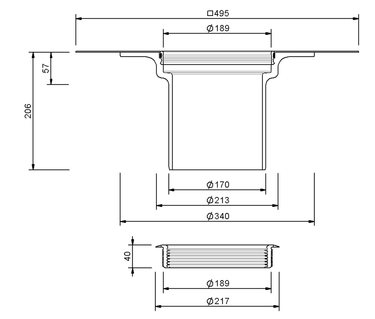 SitaStandard Aufstockelement aus Polyurethan, nach DIN EN 1253, für Dämmstoffstärken von 60 mm bis 520 mm je nach Artikel. Mit eingeschäumter Wunschanschlussmanschette.