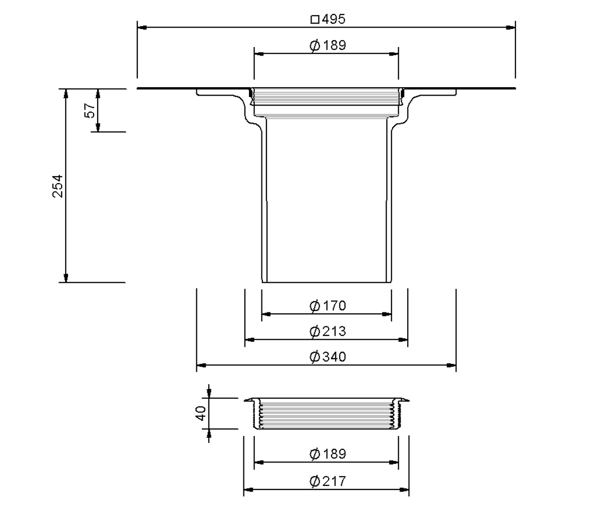 SitaStandard Aufstockelement aus Polyurethan, nach DIN EN 1253, für Dämmstoffstärken von 60 mm bis 520 mm je nach Artikel. Mit eingeschäumter Wunschanschlussmanschette.
