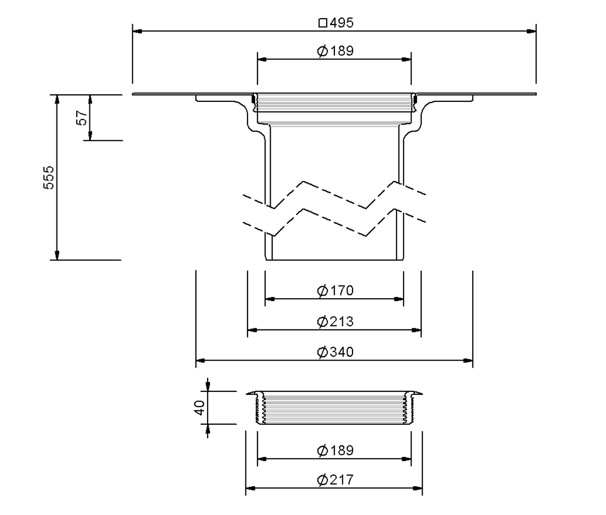SitaStandard Aufstockelement aus Polyurethan, nach DIN EN 1253, für Dämmstoffstärken von 60 mm bis 520 mm je nach Artikel. Mit eingeschäumter Wunschanschlussmanschette.