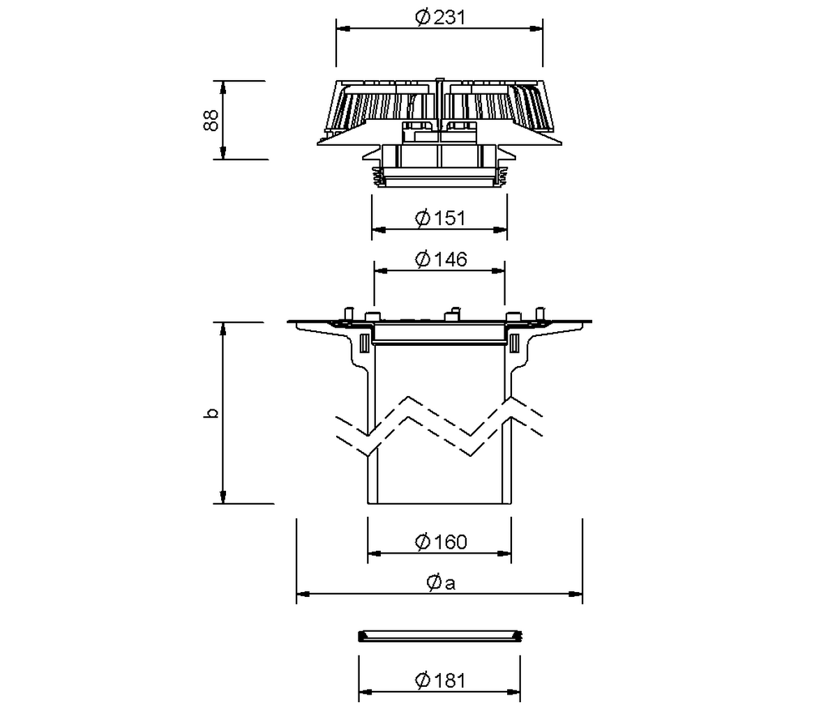 SitaSani® 160 DSS Schraubflansch Sanierungsgully, aus Polyurethan, wärmegedämmt, zur Sanierung von Druckentwässerungsdachgullys mit einem Topfdurchmesser von 160 mm, Bauteillänge 550 mm, mit vorgefertigten Bohrungen zur Befestigung des Bauteils in der Unterkonstruktion. Mit eingeschäumtem Einsatzring zur Aufnahme der beiliegenden Schrauben, Losflansch aus Aluminium und zwei Dichtmanschetten zum Einklemmen von Bitumen-, Kunststoff- oder Kautschukbahnen, inklusive Airstop und Dichtring, liefern und fachgerecht einbauen. Vorhandene Dichtungen sind eigenverantwortlich auf Funktionstüchtigkeit zu prüfen.