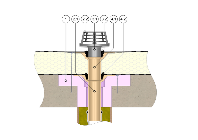 SitaCompact mit Anstauring im nicht belüfteten Dachaufbau mit Plattenbelag