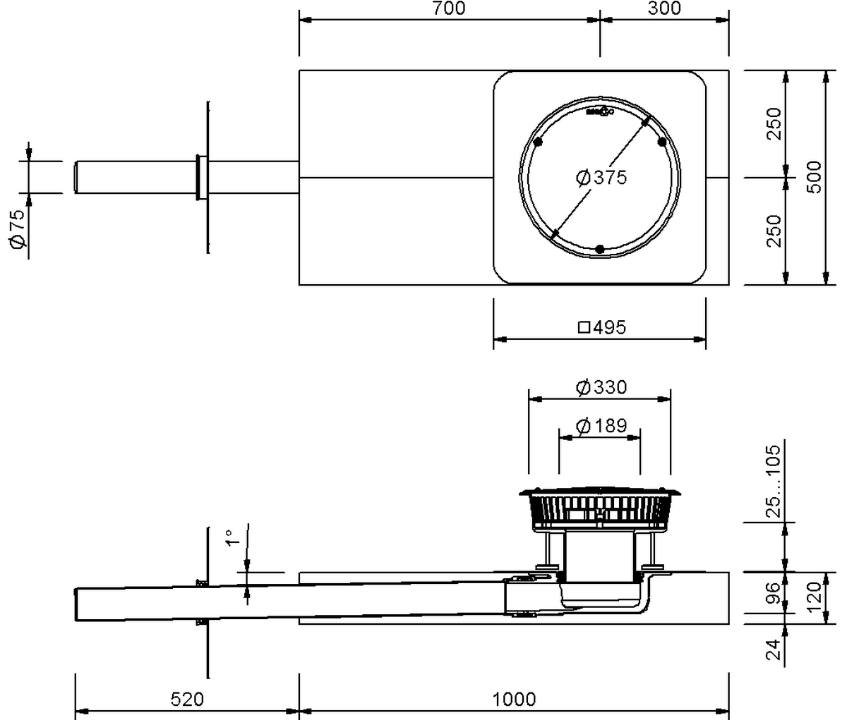SitaDSS Indra Notentwässerungsset mit Fallleitung im nicht belüfteten Dachaufbau