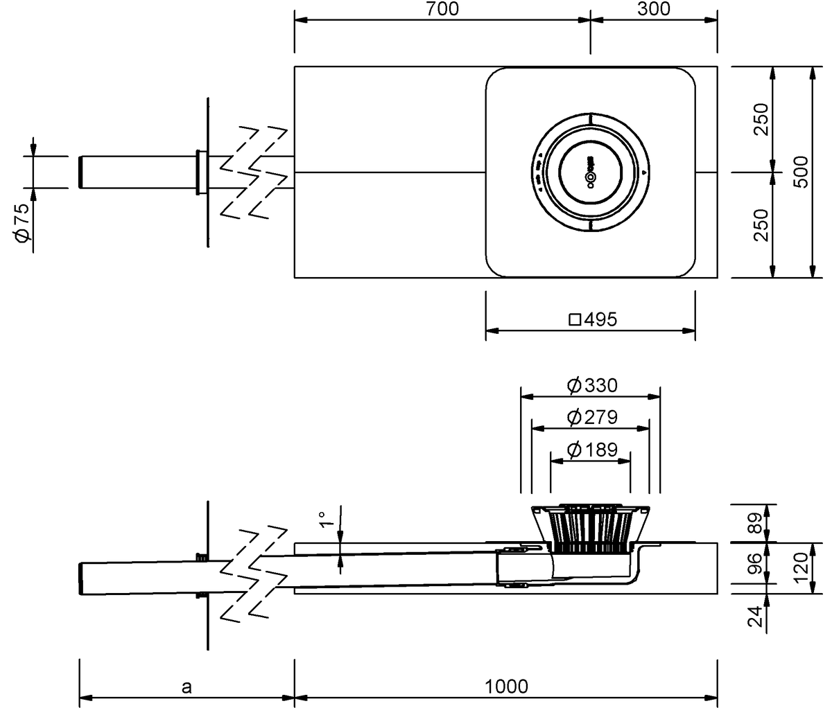 SitaIndra Attikagully, abgewinkelt, aus Polyurethan, wärmegedämmt, nach DIN EN 1253-2, in der Nennweite DN 70, Abflussmenge 5,8 l/s bei 35 mm Stauhöhe, mit Anschlussrohr und Sicherungsschelle aus Edelstahl, Dampfsperrplatte flex zum sicheren Anschluss an die Dampfsperre, zweiteiligem Dämmkörper aus Polyurethan mit einer Wärmeleitfähigkeit lambda=0,0249 W/mK und einer Druckfestigkeit von 200 kPa, in der Größe 500 x 1000 x 120 mm. Zur Freispiegelentwässerung, mit großer eingeschäumter Wunschanschlussmanschette (495 x 495 mm) passend zur Dachabdichtung und mit Fixierring zur zusätzlichen Sicherung der Anschlussmanschette und zur Aufnahme des beiliegenden Kiesfangs, liefern und fachgerecht einbauen.