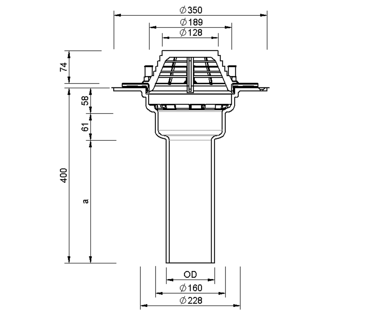 | Nennweite DN | Außendurchmesser OD (mm) | Durchbruch / Kernbohrung (mm) | a (mm) |