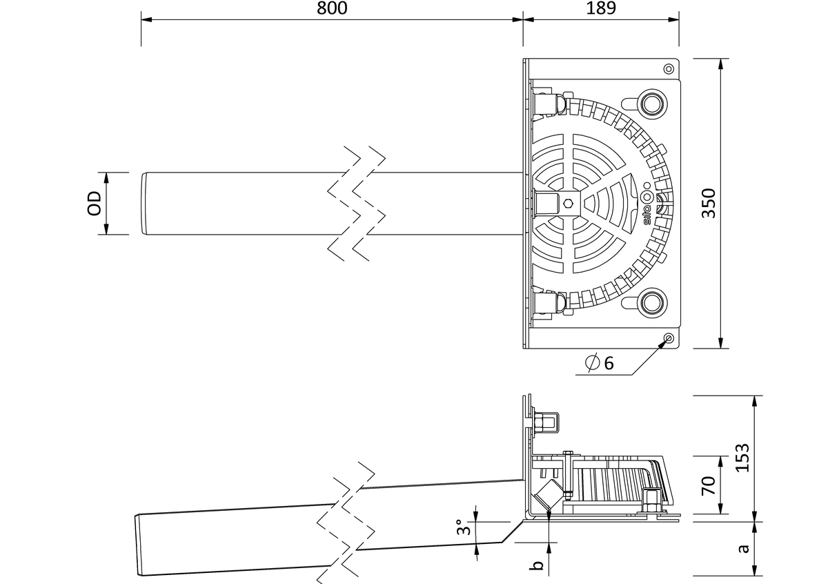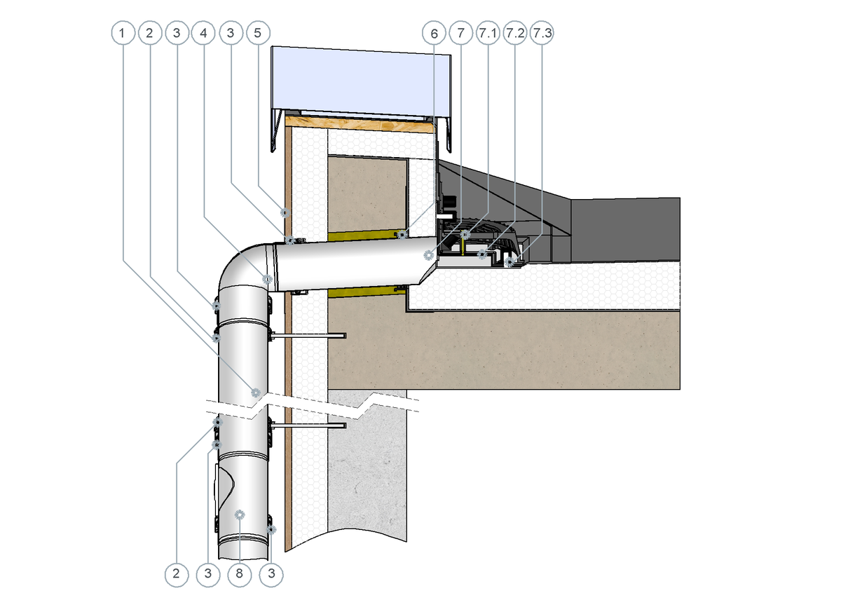 SitaRondo Attikagully, aus Edelstahl rostfrei, Werkstoffnummer 1.4301, mit Schraubflansch-Konstruktion, in den Nennweiten DN 50, DN 70, DN 100 und DN 125, 800 mm Stutzenlänge, Stutzenneigung 3°, mit flachem Losflansch und zwei Dichtmanschetten zum Einklemmen von Bitumen-, Kunststoff- oder Kautschukbahnen. Mit Gewindebolzen M12, Unterlegscheiben, Muttern, Schutzkappen und Kiesfang, liefern und fachgerecht einbauen.