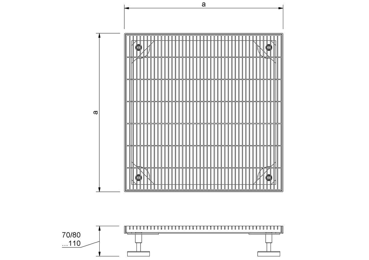 | Конструкция решетки | a (мм) | Мин. регулировка высоты (мм) | Регулировка высоты, макс. (мм) |